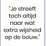 Werkvoorbereider Robin Bakker hierover: “We zijn nog relatief jong. We hebben vaak te maken met wat oudere vakgenoten op de bouw. Zij hebben natuurlijk veel meer ervaring. Het is fijn als wij dan dankzij extra cursussen toch kunnen meepraten. Als blijkt dat je echt weet waar je over praat en een klant kan adviseren, verandert meteen de setting en hoe ze naar je kijken.”